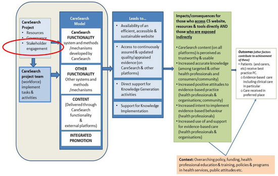The development of a formal Engagement Framework fits into the CareSearch Model at a similar point to other stakeholder activities. The intended consequence of implementing the 2018–2020 structured engagement activity is that CareSearch staff will gain a deeper understanding of the context in which people seek information [24]. These insights will be used to develop a set of priority actions that they would not otherwise have identified that can be implemented to contribute to the functionality, content and promotion of the CareSearch Model in a way that increases its reach and impact with the targeted groups.