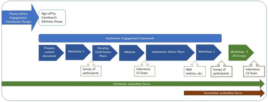 The engagement framework is intended to provide a structured approach to understanding the context that affects the reach and uptake of evidence in each target group to inform development of clear priority actions that CareSearch can implement and evaluate. The overall goal of implementing and evaluating the engagement activity is to consider whether this approach adds value to the work of CareSearch (formative or process evaluation focus), and whether it increases reach and utility of the website and uptake of resources to support implementation of evidence in the target groups (summative or impact evaluation focus).