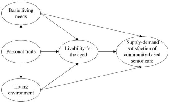 (3) Perceived value reflects customers’ subjective perceptions of the benefits they receive after a comprehensive assessment of the quality and price of a product or service [40]. In this study, it was defined as the perceived livability of community elderly care formed by the overall environmental conditions, facilities, location characteristics, government support, and some other compositions of the community [41]. Here, livability for the aged (LA) refers to the needs that rise to the higher level of comfort and enjoyment of life including whether the number of community elderly facilities is sufficient, whether the configuration of facilities and environment is convenient for operation, whether it meets the usage characteristics of the elderly, whether the space arrangement is reasonable, and whether the government attaches importance to the work of the elderly and so forth [42]. The demand for livability and suitability for the elderly is based on the satisfaction of basic living and housing needs and the shift of focus from “necessary” to “suitability”. It is also influenced by personal characteristics, i.e., the perception of livability is heterogeneous depending on individual circumstances [43].