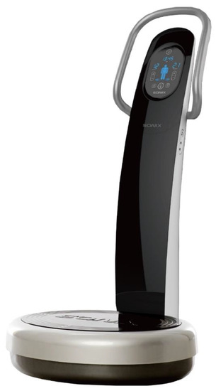 WBVT was conducted using a 900 × 910 × 1450 mm-sized vibrating platform (SW-VC15™, SONICWORLD Co., Ltd., Wonju, Korea) (Figure 1) [27]. This device transmits sound wave vibration to the human body by generating precise vertical vibration, not horizontal vibration, as in previous types of mechanical acceleration [28]. The device enables the appropriate frequency (3–50 Hz) and amplitude (0–99 mm) to be set according to a patient’s condition. In this case, vibration frequency was set to 10 Hz and vibration amplitude was set to 5 mm [29].