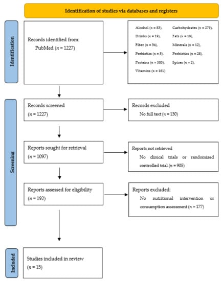 The influence of selected nutritional factors on AV described in publications found to be in accordance with the assumed criteria is presented in Table 1. In addition, Table 2 summarises the studies that were found during the database review to discuss and explain the role of nutritional factors but were not displayed according to the assumed criteria for the literature review.