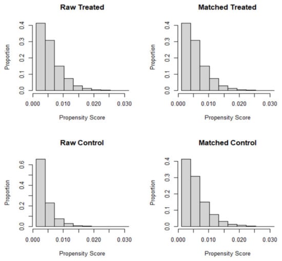 - Sekhon, J.S. Multivariate and propensity score matching software with automated balance optimization: The matching package for R. J. Stat. Softw. 2011, 42. [Google Scholar] [CrossRef]