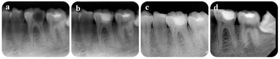 - Chapman, M.N.; Nadgir, R.N.; Akman, A.S.; Saito, N.; Sekiya, K.; Kaneda, T.; Sakai, O. Periapical lucency around the tooth: Radiologic evaluation and differential diagnosis. Radiographics 2013, 33, E15–E32. [Google Scholar] [CrossRef] [PubMed]