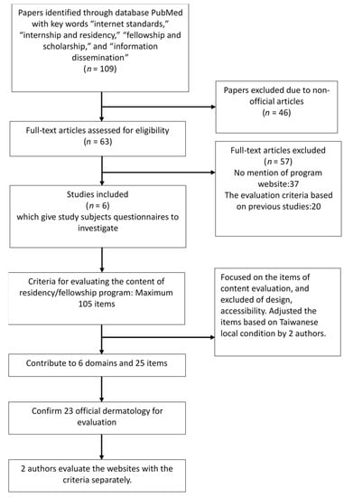 - Chen, P.Y.; Hsu, Y.C.; Chen, T.J. Criteria for evaluating the websites of residency and fellowship programs. Taiwan J. Fam. Med. 2020, 30, 196–203. [Google Scholar]