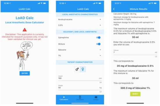 Suppan, M.; Beckmann, T.S.; Gercekci, C.; Sigrist, T.; Savoldelli, G.L.; Fournier, R.; Samer, C.F. Development and Preliminary Validation of LoAD Calc, a Mobile App for Calculating the Maximum Safe Single Dose of Local Anesthetics. Healthcare 2021, 9, 799. https://doi.org/10.3390/healthcare9070799