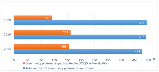 Three cross-sectional electronic surveys were conducted among community pharmacies in Estonia in 2014 (N = 478 pharmacies), 2016 (N = 493), and 2019 (N = 494) to follow-up the reception and application of the CPSQG. It was asked to fill in only one survey per pharmacy.