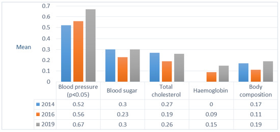 Information related to the pharmacy-based extended services (patient health indicators data) was always documented in about 1/5 pharmacies in all study years. Participation at health and environmental campaigns outside of pharmacies decreased significantly (2014-16 Tamhane p < 0.001; 2014-19 Tamhane p < 0.001).