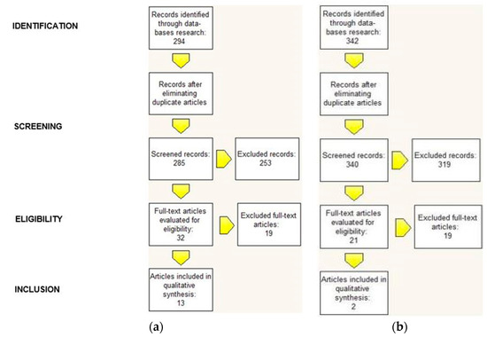 Regarding the trauma of tooth extraction, reviewing different search engines resulted in 342 articles available for consideration. After eliminating duplicate articles, 340 articles remained to be screened. After a first reading we excluded 319 articles because they were not relevant and we evaluated 21 full-text articles. After evaluating these 21 full-text articles, we excluded 19 articles because they did not show any correlation between Eagle syndrome and extractive dental events. This left two articles published between 2016 and 2018 in which extractive dental events seemed to be correlated to Eagle syndrome (Figure 1b).