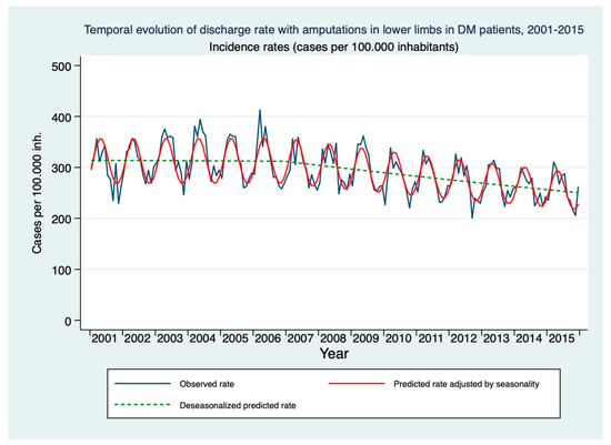Modeling of the temporal evolution of the rate of hospital discharges with lower limb amputations in people over 18 years of age with DM in the period 2001–2015.