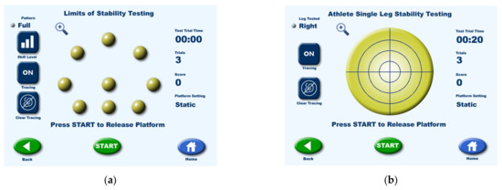(a) Limits of stability testing and (b) Single-leg stability testing.