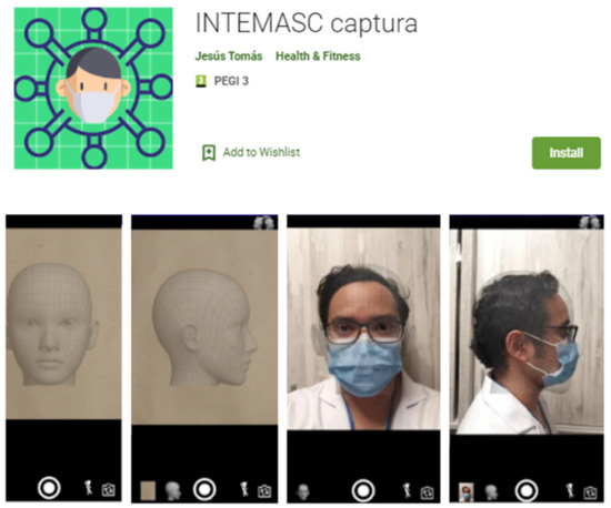 To tackle the problem, we decided to resort to citizen collaboration. We developed an application, shown in Figure 1, for mobile phones, which asked users to place the mask in different positions and take a selfie. The application was published on Google Play [34] and we went to the media to disseminate it [35]. The application was downloaded by more than 500 users during the summer of 2020 and about 3200 images were obtained, with a resolution of 360 × 480, half of them from the front and the other half from the side.