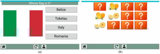 Examples of the “flags” orientation game (a) and the memory game “pairs” (b).