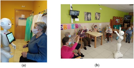 - Fasola, J.; Matarić, M.J. A socially assistive robot exercise coach for the elderly. J. Human Robot Interact. 2013, 2, 3–32. [Google Scholar] [CrossRef]