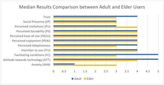 Median Results Comparison between Adult and Elderly Users.