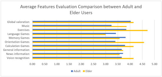Average Features Evaluation Comparison between Adult and Elderly Users.