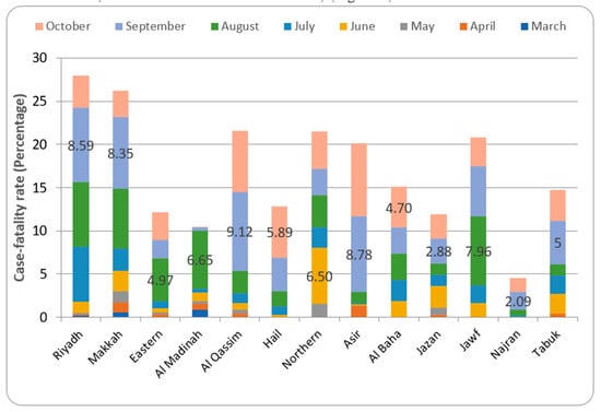 Case–fatality rate in different provinces of Saudi Arabia.