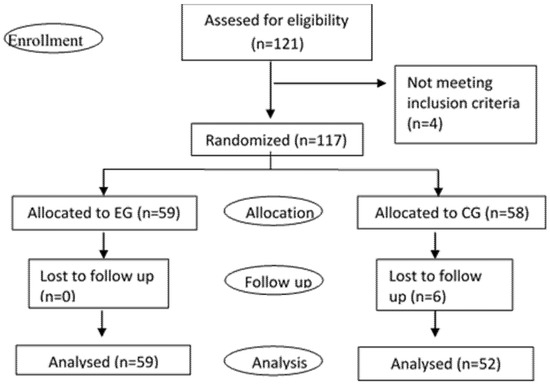 Consort diagram. Note: EG, experimental group; CG, control group.