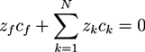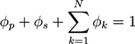 where ϕp and ϕs are the volume fractions of the polymer network and the solvent phase, while ϕ1,...,ϕN are the volume fractions of the N ion phases. The volume fractions ϕk are proportional to corresponding concentrations ck. In the absence of chemical reactions, the concentrations obey the conservation law: