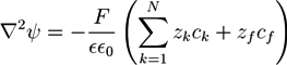 Following the method used in [48], here we discuss a typical set of equations used in combination with the Poisson equation. The time dependence of the concentration ck of mobile ions of type k can be described by the Nernst-Planck equation: