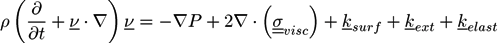is the viscous stress tensor, ksurf and considers the surface tension from the interfaces [59]. The term kext represents external forces, such as gravity, while