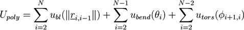 over all configurations of the kth polymer of type j. Path integrals are useful mathematical tools. They can be considered as the limit for N → ∞ of a 3N-dimensional integral that considers all configurations of a polymer with fixed length L and N atoms of diameter L/N. In practice, most path integrals cannot be solved numerically. One exception is the path integral of a single Gaussian chain. The basic idea of the self-consistent field theory is to transform Equation (27) such that only path integrals of single Gaussian chains have to be solved. In Equation (27), non-bonded interactions between polymers are considered by: