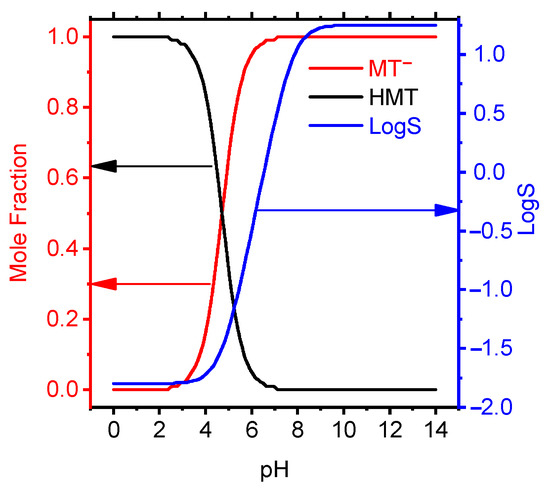 Mole fraction and LogS data of MT depending on pH by the calculated semiempirical method using the ACDChem software package.