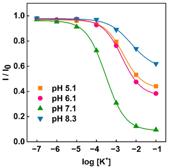 - Sahari, A.; Ruckh, T.T.; Hutchings, R.; Clark, H.A. Development of an Optical Nanosensor Incorporating a pH-Sensitive Quencher Dye for Potassium Imaging. Anal. Chem. 2015, 87, 10684–10687. [Google Scholar] [CrossRef] [PubMed] [Green Version]