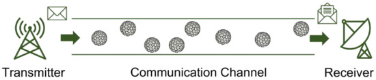 - Atakan, B.; Akan, O.B. An information theoretical approach for molecular communication. In Proceedings of the 2007 2nd Bio-Inspired Models of Network, Information and Computing Systems, Budapest, Hungary, 10–12 December 2007; IEEE: Piscatway, NJ, USA, 2007; pp. 33–40. [Google Scholar]