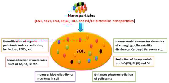 Illustration of the main uses of nanomaterials in soil analysis and remediation. Reprinted with permission from [133].
