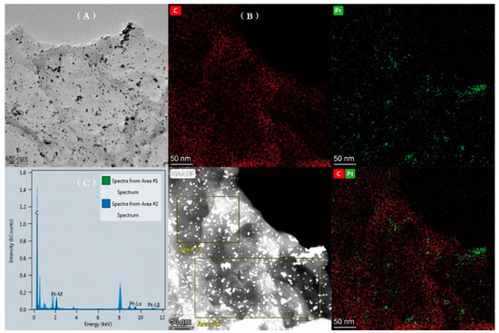 TEM image (A), elemental mapping (B) and EDS (C) of PtNPs@GDY.