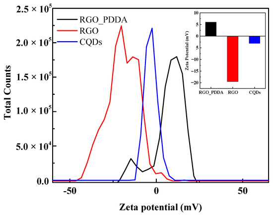 Zeta potentials of RGO, RGO_PDDA, and CQDs.