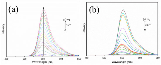 - Lan, H.; Wen, Y.; Shi, Y.; Liu, K.; Mao, Y.; Yi, T. Fluorescence Turn-On Detection of Sn2+ in Live Eukaryotic and Prokaryotic Cells. Analyst 2014, 139, 5223–5229. [Google Scholar] [CrossRef]