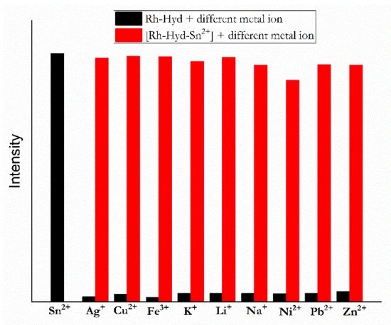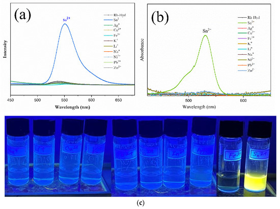 - Kong, Y.; Wang, M.; Lu, W.; Li, L.; Li, J.; Chen, M.; Wang, Q.; Qin, G.; Cao, D. Rhodamine-Based Chemosensor for Sn2+ Detection and its Application in Nanofibrous Film and Bioimaging. Anal. Bioanal. Chem. 2022, 414, 2009–2019. [Google Scholar] [CrossRef]