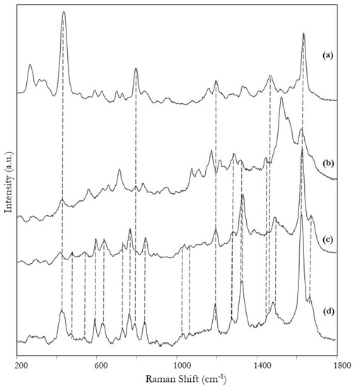 - Pozzi, F.; Leona, M. Surface-enhanced Raman spectroscopy in art and archaeology. J. Raman Spectrosc. 2016, 47, 67–77. [Google Scholar] [CrossRef]