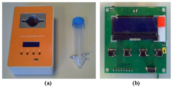 Photograph of the portable sensor system for olive oil quality grade detection (a) and designed electronic board (b).