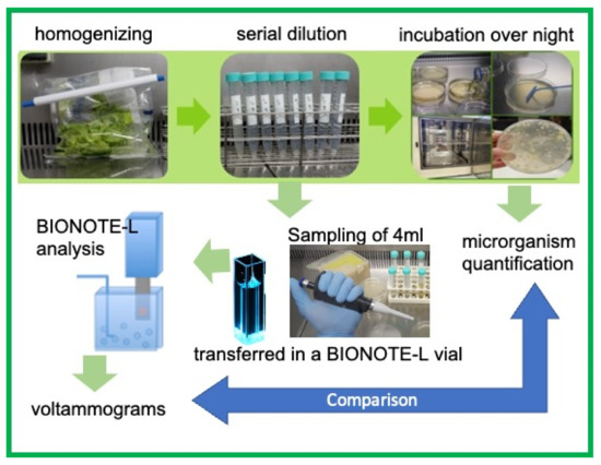 For these reasons, electrochemical-sensor-based approaches are receiving increasing attention for their use in food analysis, as alternative/supportive methods to detect microorganisms. These systems can be implemented along the production line, performing detection of microorganisms of interest before the end of the food production cycle, by providing real-time information.