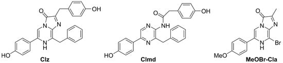 - Krasitskaya, V.V.; Bashmakova, E.E.; Frank, L.A. Coelenterazine-dependent luciferases as a powerful analytical tool for research and biomedical applications. Int. J. Mol. Sci. 2020, 21, 7465. [Google Scholar] [CrossRef]