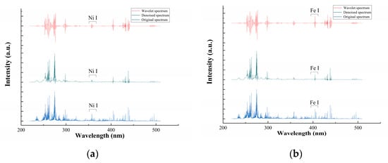 - Zou, X.; Guo, L.; Shen, M.; Li, X.; Hao, Z.; Zeng, D.; Lu, Y.; Wang, Z.; Zeng, X. Accuracy improvement of quantitative analysis in laser-induced breakdown spectroscopy using modified wavelet transform. Opt. Express 2014, 22, 10233–10238. [Google Scholar] [CrossRef] [PubMed]