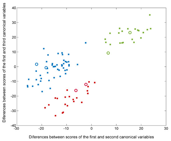 Linear discriminant analysis (LDA) [51,52], a well-known and extensively applied powerful supervised chemometric classification technique, enabled us to discriminate between prespecified subgroups. Based on LDA classification rules, the objects are always classified in one of the predefined classes [53]. The discrimination performance was optimised by selecting the most significant wavenumbers by a stepwise orthogonalisation of predictors (SELECT) [49]. The SELECT algorithm enabled reliable classification between patients’ classes, providing input features for a further stepwise LDA.