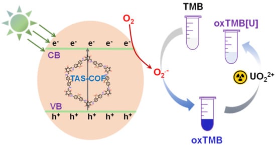 Illustration for colorimetric detection of UO22+ with visible light-responsive TAS-COF.