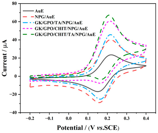 3.2. Electrochemical Properties of Different Modified Electrodes