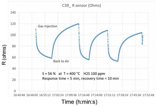 Response of sensor C39 under 100 ppm H2S at T = 400 °C.