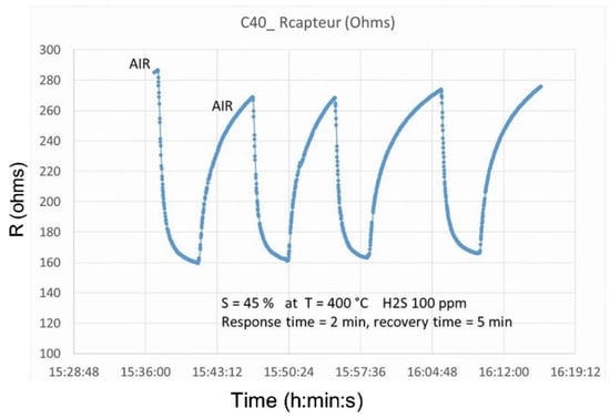 Response of sensor C40 under 100 ppm H2S at T = 400 °C.