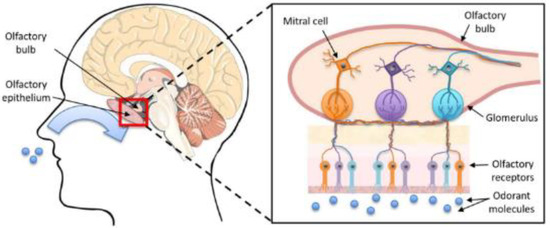 Schematic of the human olfactory system. Reprinted with permission from Ref. [11]. Copyright 2018, MDPI.