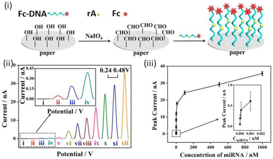 - Liu, X.; Li, X.; Gao, X.; Ge, L.; Sun, X.; Li, F. A Universal Paper-Based Electrochemical Sensor for Zero-Background Assay of Diverse Biomarkers. ACS Appl. Mater. Interfaces 2019, 11, 15381–15388. [Google Scholar] [CrossRef]
