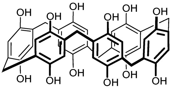 P[6]A (chemical structure is presented in Figure 1) was synthesized at the Department of Organic and Medicinal Chemistry of the Kazan Federal University (Kazan, Russia) as described elsewhere [29]. Briefly, cyclization of 1,4-bis(2-bromoethoxy)benzene was first performed in the presence of methazine sulfonic acid in chloroform at 0 °C, and then hydroxy groups were liberated by treatment with BBr3. The structure of P[6]A was confirmed by NMR 1H and 13C spectroscopy and by MALDI-TOF mass spectroscopy. Prior to use, synthesized P[6]A was stored under Ar in a frozen state at −20 °C.