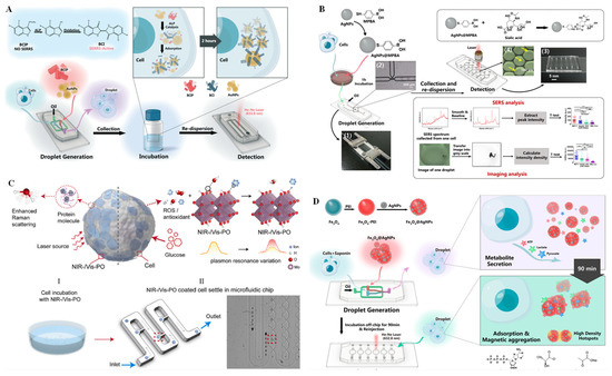 - Sun, D.; Cao, F.; Tian, Y.; Li, A.; Xu, W.; Chen, Q.; Shi, W.; Xu, S. Label-free detection of multiplexed metabolites at single-cell level via a SERS-microfluidic droplet Platform. Anal. Chem. 2019, 91, 15484–15490. [Google Scholar] [CrossRef]