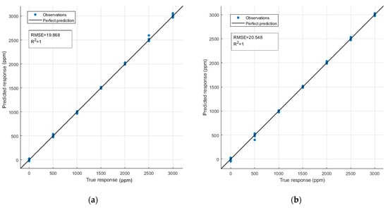 PLS with MOX sensors only. (a) CH4 PLS, (b) CO2 PLS.