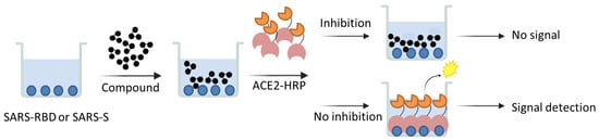 Testing libraries of compounds using an infectious virus allows for the search of new inhibitors of viral replication, but this requires the use of laboratories with the appropriate level of biosafety. In this regard, surrogate models that screen potential candidates without the use of a natural virus are becoming increasingly popular. These surrogate systems can be used both directly to screen new inhibitors and to elucidate the mechanism of action of known antiviral agents. For example, to detect RBD inhibitors, a series of competitive ELISA tests have been developed to detect ligands that bind to RBD or the ACE2 cell receptor [], an approach that has proven to be convenient for the evaluation of neutralizing antibodies [].