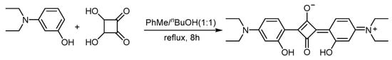 - Khopkar, S.; Shankarling, G. Synthesis, photophysical properties and applications of NIR absorbing unsymmetrical squaraines: A review. Dye. Pigment. 2019, 170, 107645. [Google Scholar] [CrossRef]